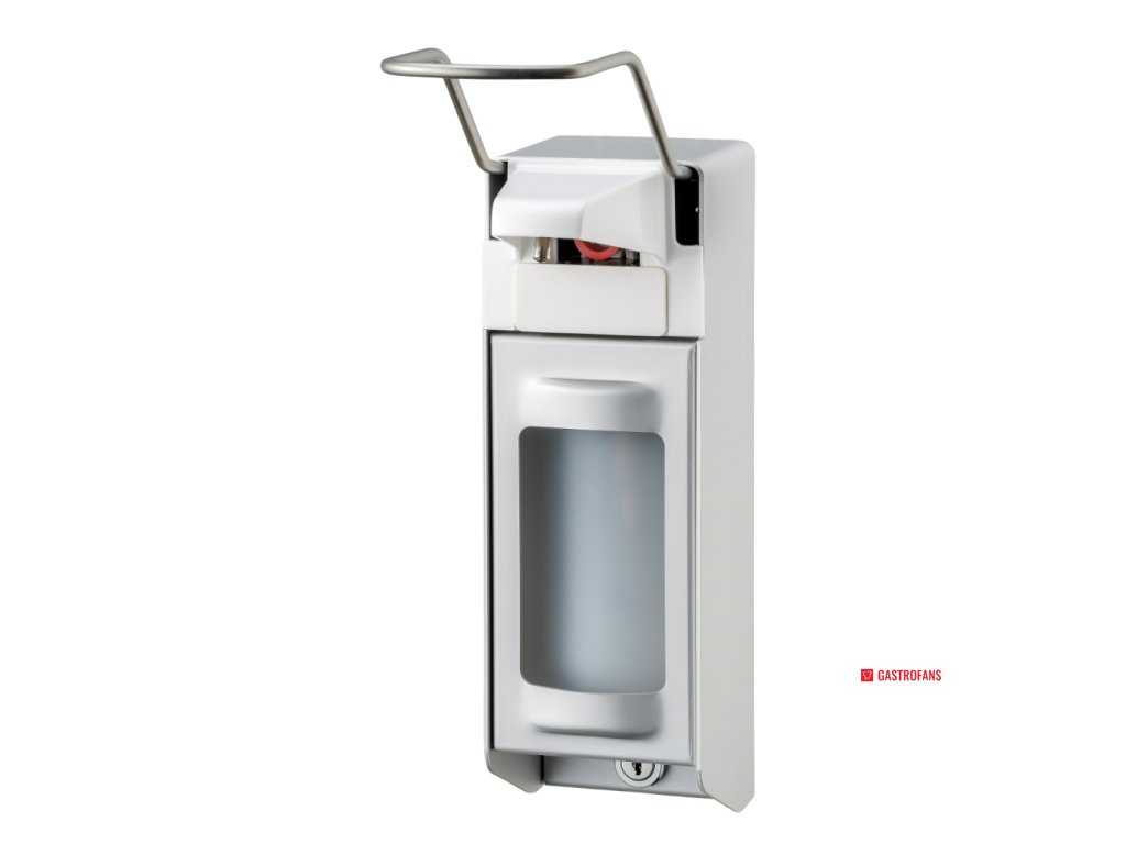 Nástěnná montáž zajišťuje těsné připevnění desky ke stěně, což zabraňuje pronikání nečistot za dávkovač. Dlouhá páka umožňuje pohodlné a hygienické ovládání loktem, zatímco odolná hliníková konstrukce zajišťuje dlouhou životnost a spolehlivost.
