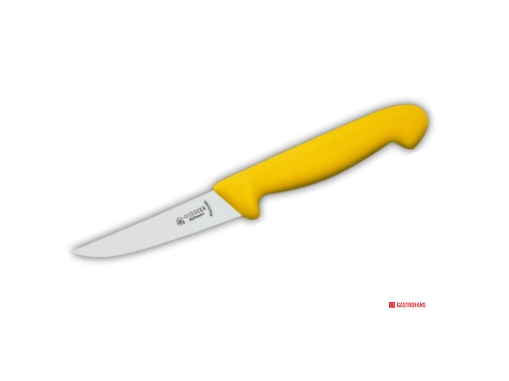 Nůž od německého výrobce Giesser nesmí chybět v žádné kuchyni. Jeho čepel se vyrábí z kvalitní nerezové oceli a plastová rukojeť dovoluje jednoduché uchopení.Nůž na drůbež 12 cm, žlutý