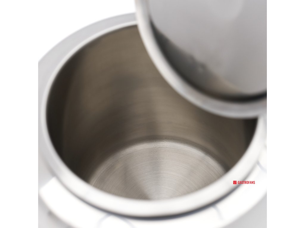 Konvice je celá vyrobena z nerezové oceli, a to zvenku i zevnitř. Díky tomu je odolná vůči náročnému každodennímu používání v pohostinství. Díky své pevné konstrukci je ideální pro kuchyně, kde je klíčová rychlost, spolehlivost a hygiena. Obsluha je jednoduchá: naplňte základní rám vodou, zapojte jej do sítě a nastavte požadovanou teplotu (v 1-12 krocích). Jakmile konvice dosáhne správné teploty, vložte do základny vnitřní nádobu naplněnou horkou polévkou nebo omáčkou. Váš pokrm zůstane dokonale teplý bez rizika připálení.