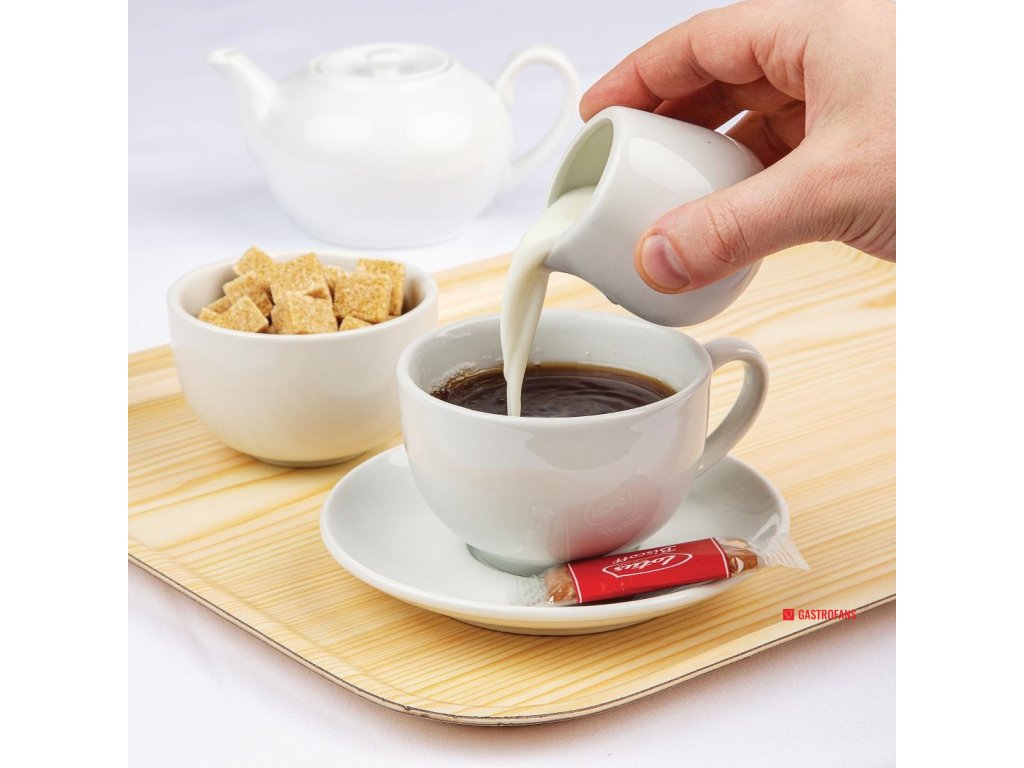 Sada 12 bílých džbánků o objemu 85 ml je ideální pro servírování mléka, smetany nebo jiných tekutin. Dodají šmrnc každému stolu ať už v restauraci, kavárně, nebo u vás doma.