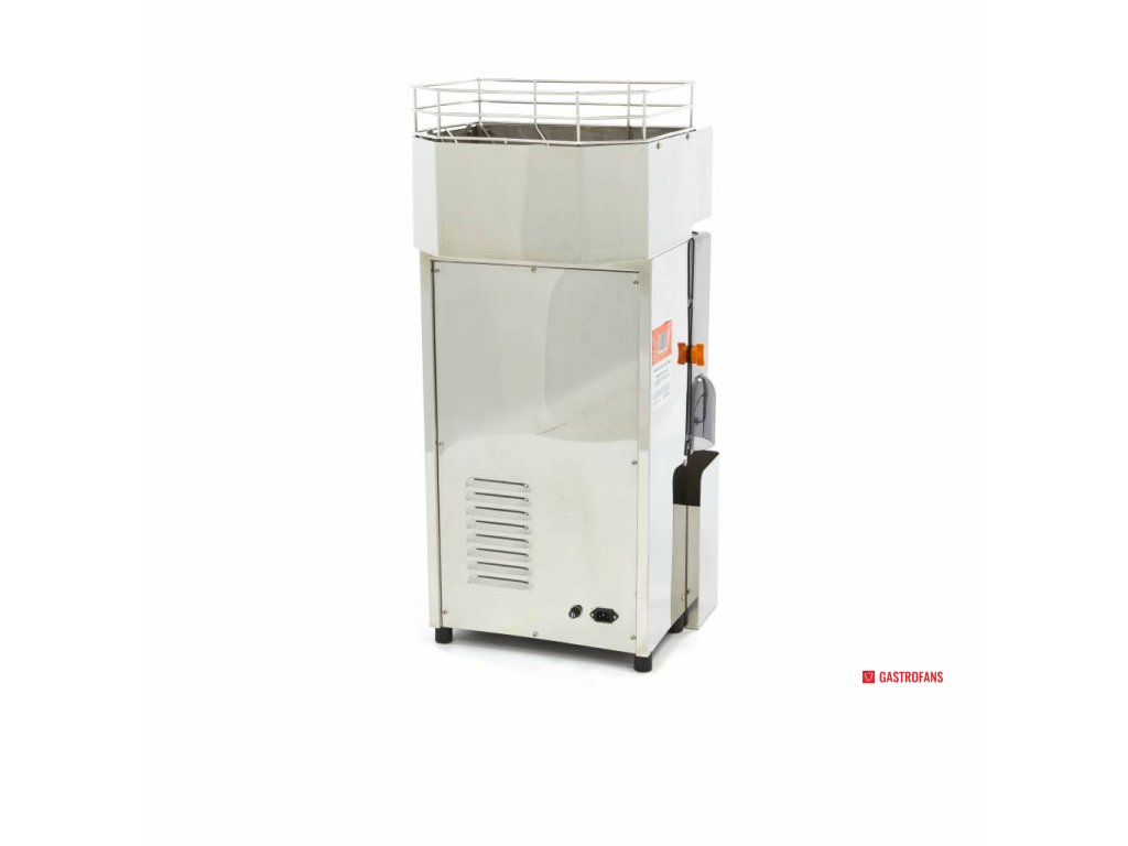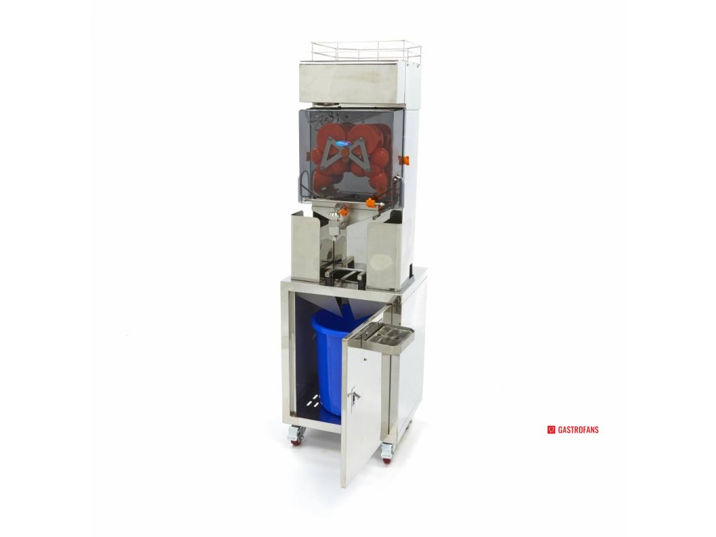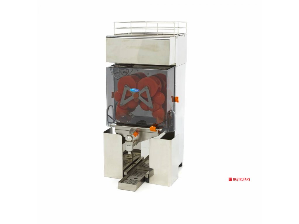 Provozovny veřejného stravování nabízející čerstvě vymačkanou pomerančovou šťávu, která se dá sama odšťavnit, si vybírají tento automatický odšťavňovač. Díky kapacitě 20 kg a automatickému podavači pomerančů můžete snadno vylisovat 20 až 25 pomerančů za minutu. Vhodná velikost pomerančů pro tento odšťavňovač je velikost 6 (90 pomerančů v krabici), kdy pomeranče mají průměr 4-9 cm. Tento robustní stolní model lze umístit na stůl, bar nebo pracovní desku. Pro větší flexibilitu si můžete objednat také vozík z nerezové oceli, který je užitečný, když chcete odšťavňovač přemístit na jiné místo nebo pro čištění v kuchyni.