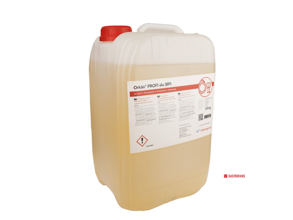 Orkán® PROFI alu (BP) je tekutý, vysoce účinný a univerzální mycí detergent určený pro profesionální myčky nádobí. Tento alkalický koncentrát je speciálně navržen pro mytí všech druhů nádobí, s důrazem na šetrnost k předmětům z hliníku a barevných kovů.