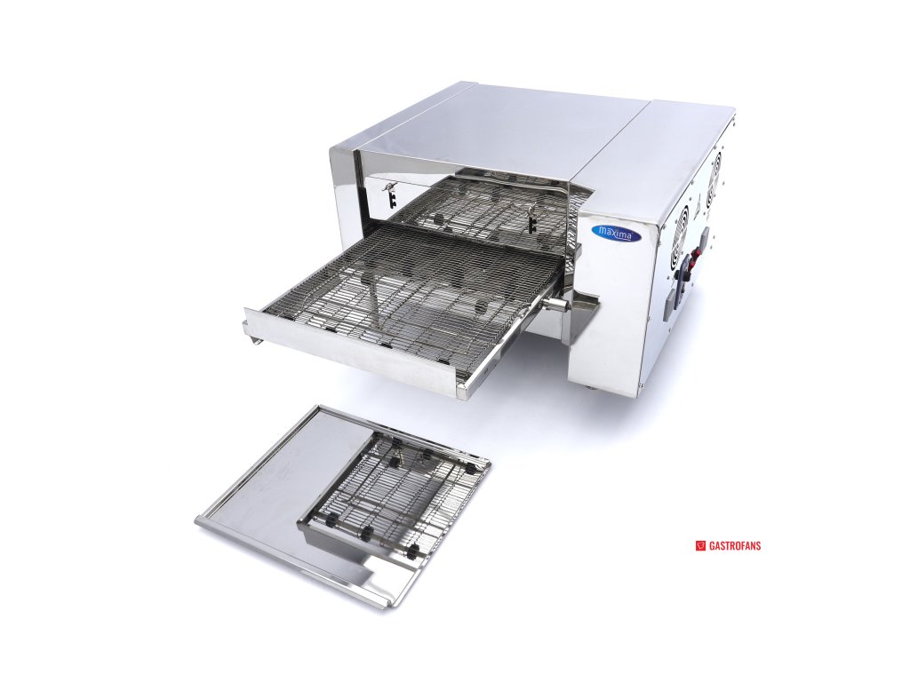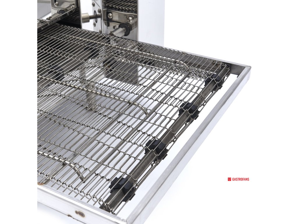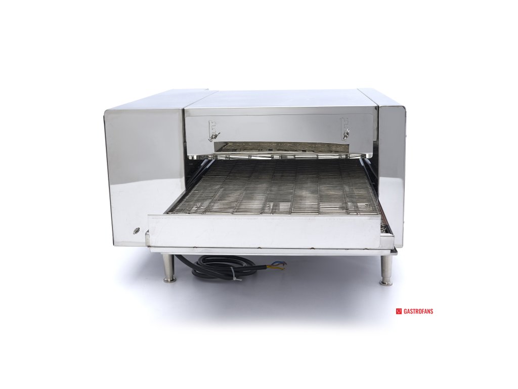 Na dopravníkovém pásu upeče tato pec na pizzu až 30 pizz za hodinu. Díky dvojitému ohřevu, z nichž každý má vlastní digitální displej, lze snadno nastavit ideální teplotu. Pomocí šipek můžete zvolit požadovanou teplotu v rozmezí 50 až 280 ºC. Pec na pizzu je navíc vybavena přepínačem rychlosti, kterým lze regulovat rychlost dopravního pásu. Tento stolní model je vhodný pro umístění na stůl nebo pracovní desku