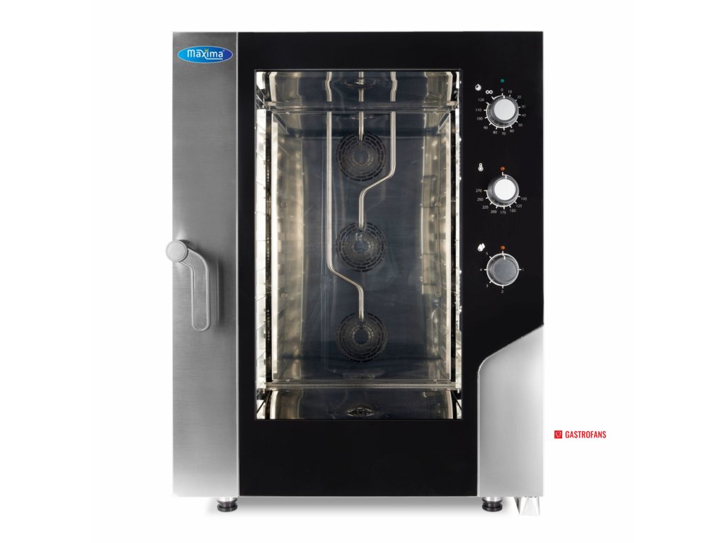 Tato pečicí trouba je profesionální parní trouba, která vykazuje vlastnosti nejvyšší kvality, jež jsou pro značku Maxima známé. Díky své kapacitě pro deset plechů je toto zařízení vhodné pro velké zakázky.