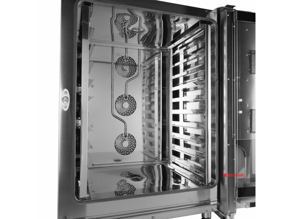 V kuchyních, kde se tvrdě pracuje a kde se nesmí ztrácet čas, je místo jen pro to nejlepší vybavení. Díky celonerezové konstrukci je spolehlivost silnou stránkou této pekařské trouby. Nejen na kvalitu, ale i na jeho schopnosti se můžete spolehnout. Tato trouba je vybavena třemi ventilátory s funkcí zpětného chodu, které efektivně získají a udrží vše při stejné teplotě. Díky velkým otočným knoflíkům navíc vždy snadno zvládnete obsluhu, a to i v pečicích rukavicích. Páru, teplotu i časovač tak nastavíte snadno a rychle.