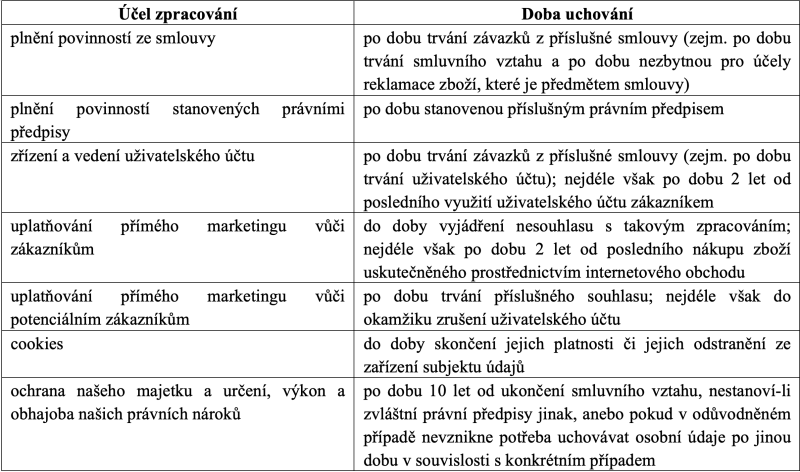 Osobní údaje zpracováváme pouze po dobu nezbytně nutnou pro dosažení účelů uvedených výše. Poté, co účel