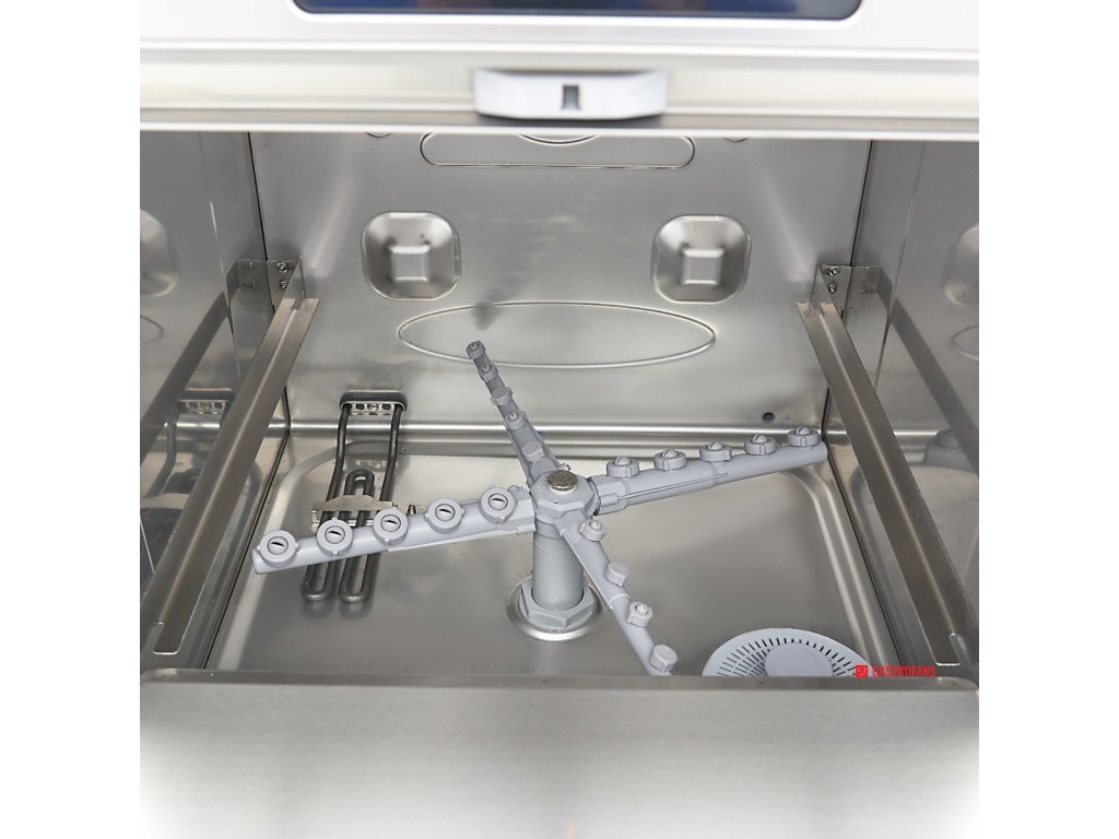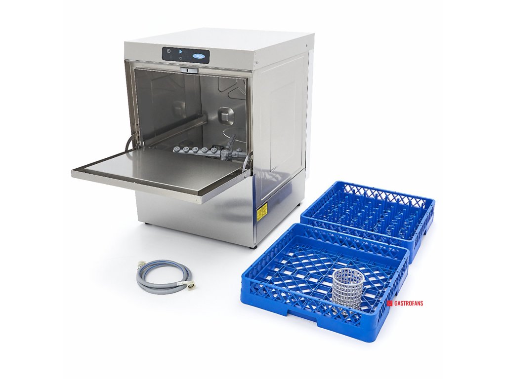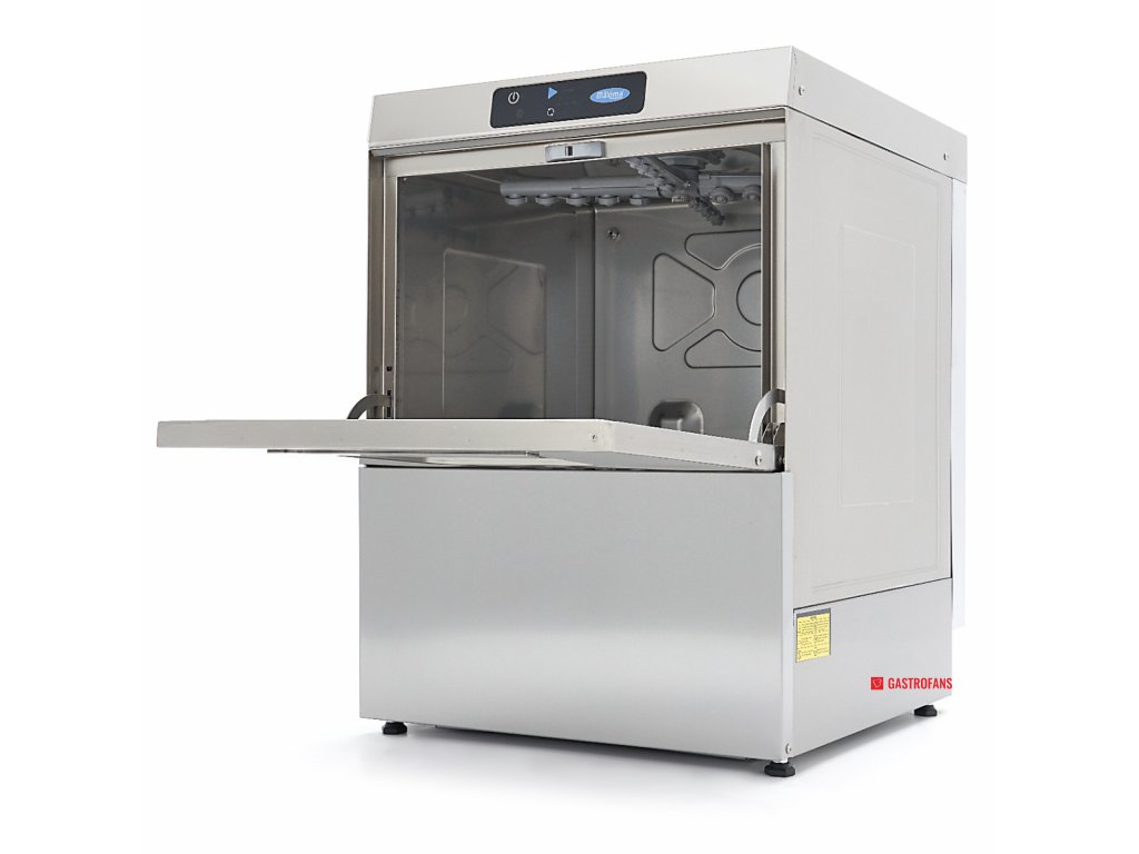 Výkonná podstavná myčka nádobí s rozměrem koše 50 × 50 cm je ideální volbou pro gastroprovozy s vysokým nárokem na hygienu a rychlost obsluhy. Nabízí tři přednastavené mycí programy (55, 105 a 195 sekund), které umožňují efektivní přizpůsobení dle typu a míry znečištění nádobí. Po dokončení cyklu je nádobí opláchnuto horkou vodou (80–85 °C), což zajišťuje rychlé schnutí bez nutnosti leštění.