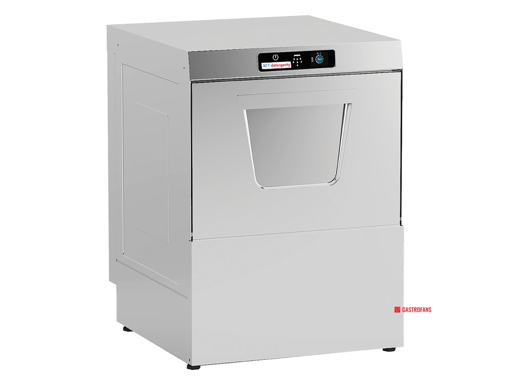 Mycí koš o rozměru 50 × 50 cm a využitelná výška 33,5 cm umožňují pohodlné mytí talířů, sklenic, podnosů i gastronádob. Nerezová konstrukce s krytím IPX5 zaručuje odolnost a hygienický provoz, mycí vana s oblými rohy usnadňuje každodenní údržbu. Zpětný ventil zajišťuje ochranu proti zpětnému toku vody. Nastavitelné nožičky umožňují optimalizaci výšky podle konkrétního provozu. Nízká spotřeba vody a přesné dávkování přispívají k úspornému provozu.