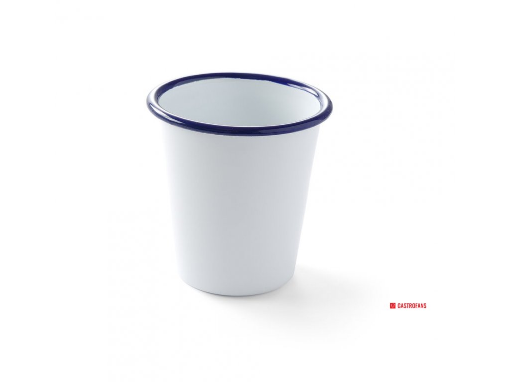 Comeback smaltovaného nádobí. Bílá smaltovaná ocel s pěkným modrým okrajem. Vysoce kvalitní smalt. Odolné proti oděru.Doplňkové parametry