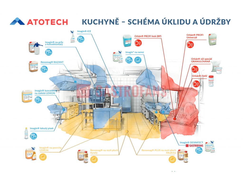 - kyselý prostředek se zvýšeným obsahem biocidní složky, určený pro všeobecné čištění a dezinfekci povrchů, pracovních desek, strojů a zařízení zvláště vhodný pro potravinářské a gastronomické provozy