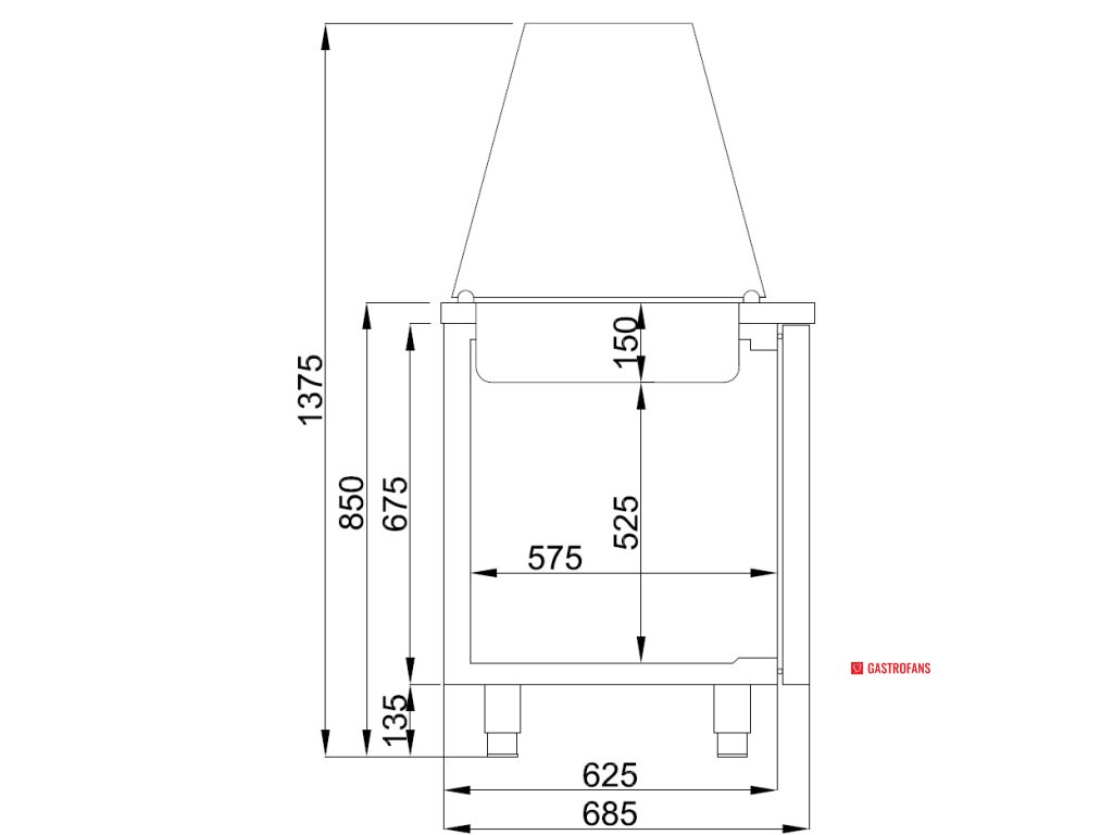 Vyrobeno z nerezové oceli Aisi 304, která zajišťuje dlouhou životnost a odolnost vůči korozi. Rozměry: šířka 1400 mm, hloubka 700 mm, výška 850 mm. Hmotnost 150 kg.