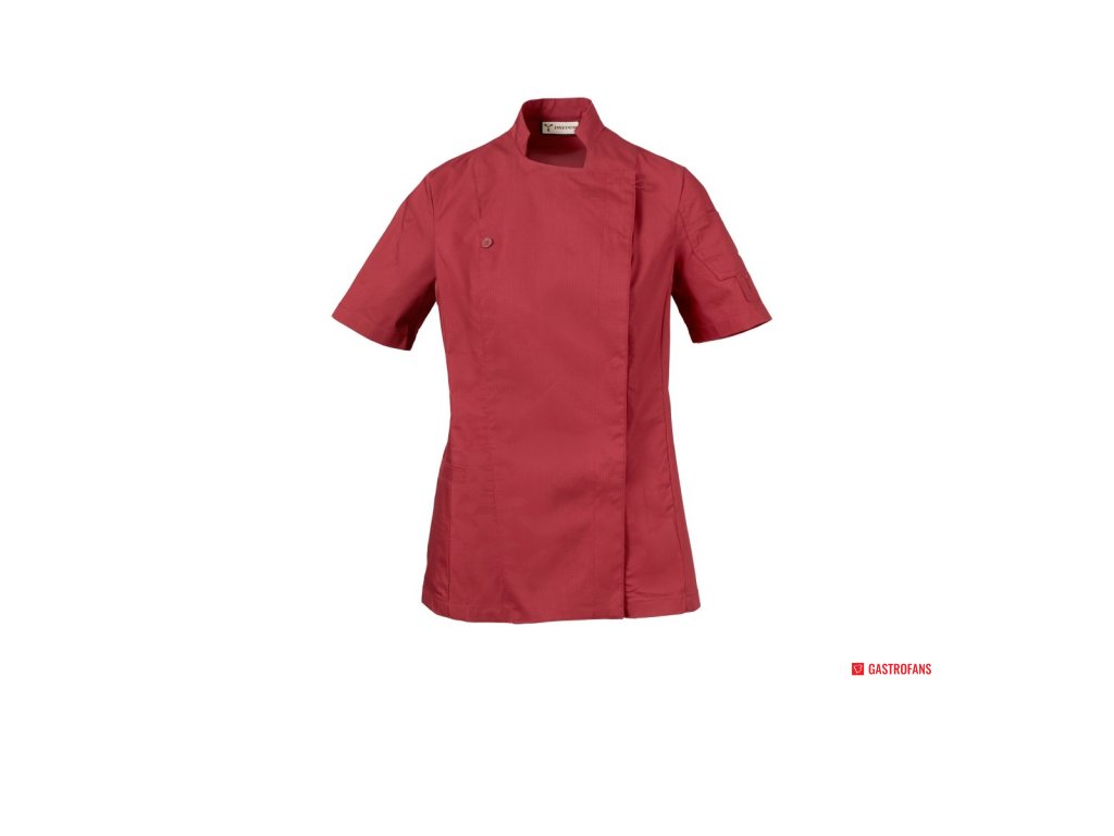 Dámský kuchařský rondon se stojáčkem, z bavlněného ripstopu a Lycry ® T400 ®, s vynikajícími elastickými a prodyšnými vlastnostmi, s pohodlnou síťovinou na zádech pro zvýšení prodyšnosti. Dvouřadé zapínání na patentky, klopa, kterou lze přeložit a připevnit ke hrudi pomocí zapínání na nezakrytý knoflík, a vytvořit tak efekt klopy na míru a inovativní výstřih do V. Krátké rukávy s lemem. Ikonická tvarovaná nášivka na levém rameni, s výšivkou vrtule tón v tónu, doplněná kapsičkou na pero. Praktická kapsa na smartphone v pase.