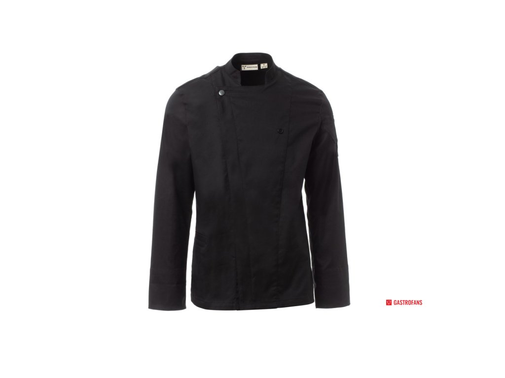 Pánský kuchařský rondon se stojáčkem, z bavlněného kepru a Lycry ® T400 ®, s vynikajícími elastickými a prodyšnými vlastnostmi. Dvouřadé zapínání na patentky, klopa, kterou lze přeložit a připevnit ke hrudi pomocí zapínání na nezakrytý knoflík, a vytvořit tak efekt klopy na míru a inovativní výstřih do V. Dlouhé rukávy s ohrnovací manžetou, luneta ze síťoviny v podpaží pro zvýšení prodyšnosti. Ikonická tvarovaná nášivka na levém rameni, s výšivkou vrtule tón v tónu, doplněná kapsičkou na pero. Praktická kapsa na smartphone v pase. Svislé rozparky v dolní části zad pro usnadnění pohybu.