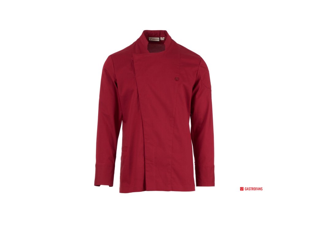 Pánský kuchařský rondon se stojáčkem, z bavlněného ripstopu a Lycry ® T400 ®, s vynikajícími elastickými a prodyšnými vlastnostmi, s pohodlnou síťovinou na zádech, v podpaží a v průramkách pro zvýšení prodyšnosti. Dvouřadé zapínání na patentky, klopa, kterou lze přeložit a připevnit ke hrudi pomocí zapínání na nezakrytý knoflík, a vytvořit tak efekt klopy na míru a inovativní výstřih do V. Dlouhé rukávy s košilovou manžetou se zapínáním na nezakrytou patentku. Ikonická tvarovaná nášivka na levém rameni, s výšivkou vrtule tón v tónu, doplněná kapsičkou na pero. Praktická kapsa na smartphone v pase.