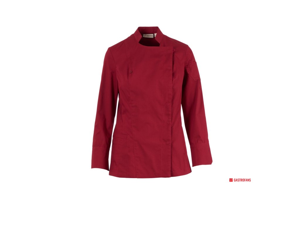 Dámský kuchařský rondon se stojáčkem, z bavlněného ripstopu a Lycry ® T400 ®, s vynikajícími elastickými a prodyšnými vlastnostmi, s pohodlnou síťovinou na zádech a v podpaží pro zvýšení prodyšnosti. Dvouřadé zapínání na patentky, klopa, kterou lze přeložit a připevnit ke hrudi pomocí zapínání na nezakrytý knoflík, a vytvořit tak efekt klopy na míru a inovativní výstřih do V. Dlouhé rukávy s košilovou manžetou se zapínáním na nezakrytou patentku. Ikonická tvarovaná nášivka na levém rameni, s výšivkou vrtule tón v tónu, doplněná kapsičkou na pero. Praktická kapsa na smartphone v pase.