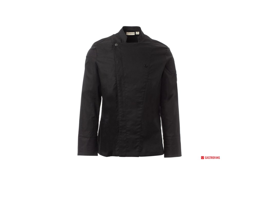 Pánský kuchařský rondon se stojáčkem, z bavlněného kepru a Lycry ® T400 ®, s vynikajícími elastickými a prodyšnými vlastnostmi. Dvouřadé zapínání na patentky, klopa, kterou lze přeložit a připevnit ke hrudi pomocí zapínání na nezakrytý knoflík, a vytvořit tak efekt klopy na míru a inovativní výstřih do V. Dlouhé rukávy s ohrnovací manžetou, luneta ze síťoviny v podpaží pro zvýšení prodyšnosti. Ikonická tvarovaná nášivka na levém rameni, s výšivkou vrtule tón v tónu, doplněná kapsičkou na pero. Praktická kapsa na smartphone v pase. Svislé rozparky v dolní části zad pro usnadnění pohybu.