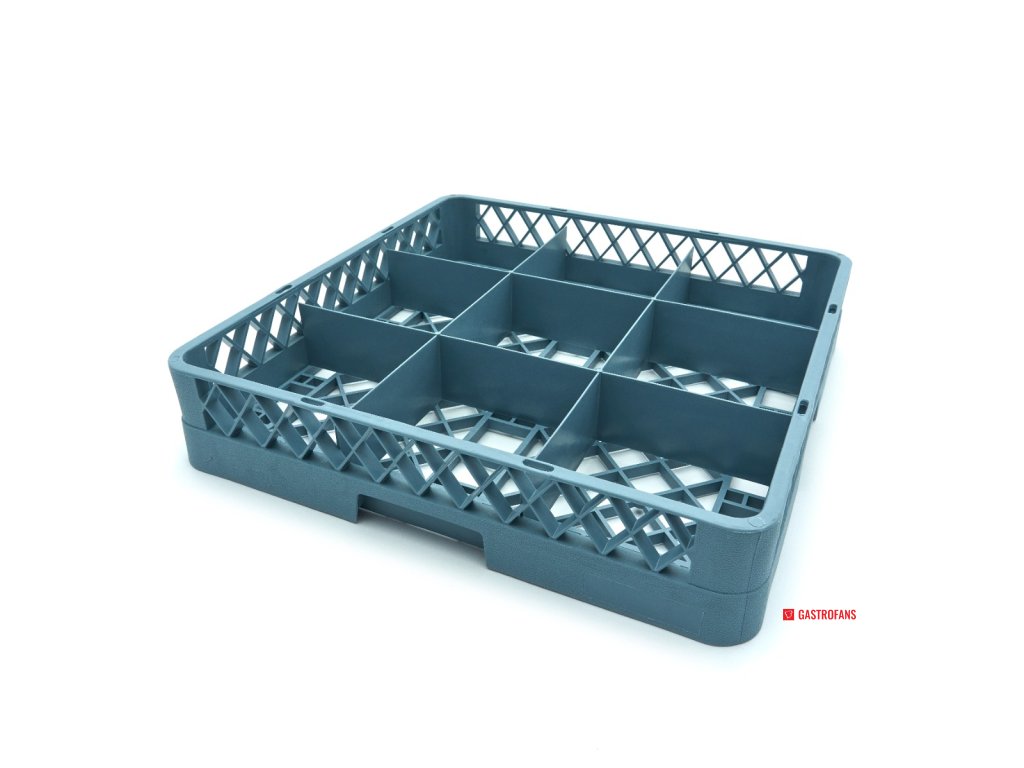 Tento stojan na sklenice o rozměrech 50 x 50 x 10 cm umožňuje mytí mnoha sklenic v jednom cyklu a pomáhá maximalizovat prostor v myčce. Snížíte tak počet mycích cyklů potřebných k tomu, aby byly sklenice opět v provozu. Konstrukce tohoto stojanu na sklo s 9 přihrádkami zajišťuje, že každá sklenice zůstane během mytí na svém místě, čímž se zabrání jejímu poškození nebo rozbití. Umožňuje také vytvořit prostor mezi sklenicemi pro důkladnější mytí, takže sklenice vyjíždějí nablýskané a připravené k použití.