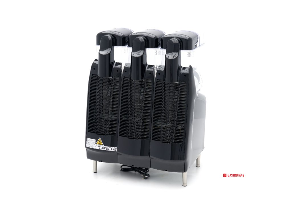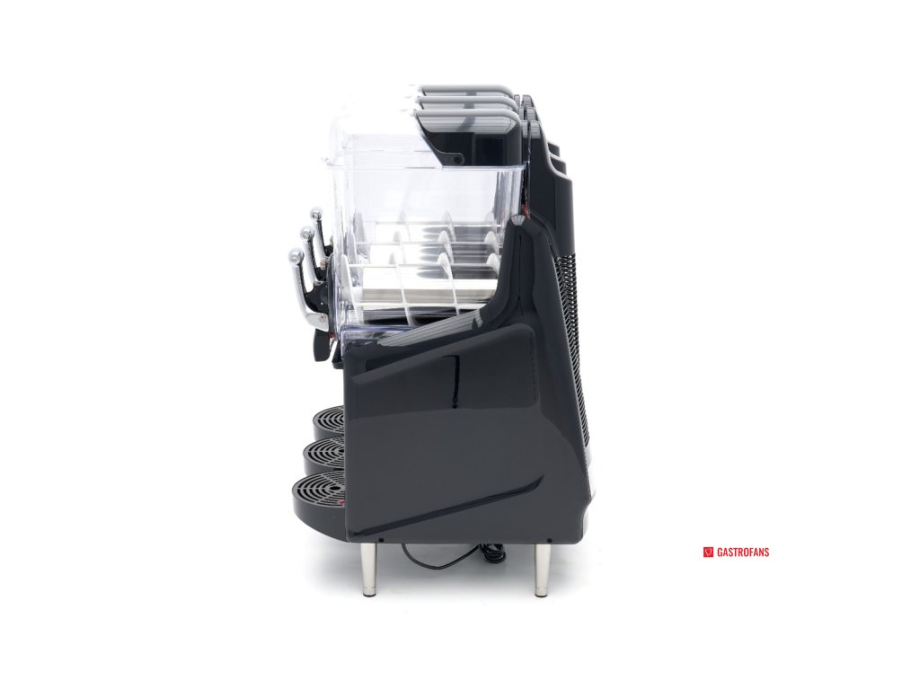 Profesionální výrobník ledové tříště se třemi samostatnými 12litrovými nádržemi je určen pro provozy s vysokou návštěvností, kde rozhoduje rychlost, kapacita a možnost volby. Každá nádrž má vlastní ovládání, takže můžete současně připravovat tři různé příchutě – granitu, ledovou tříšť nebo chlazené nápoje – bez kompromisů v kvalitě.