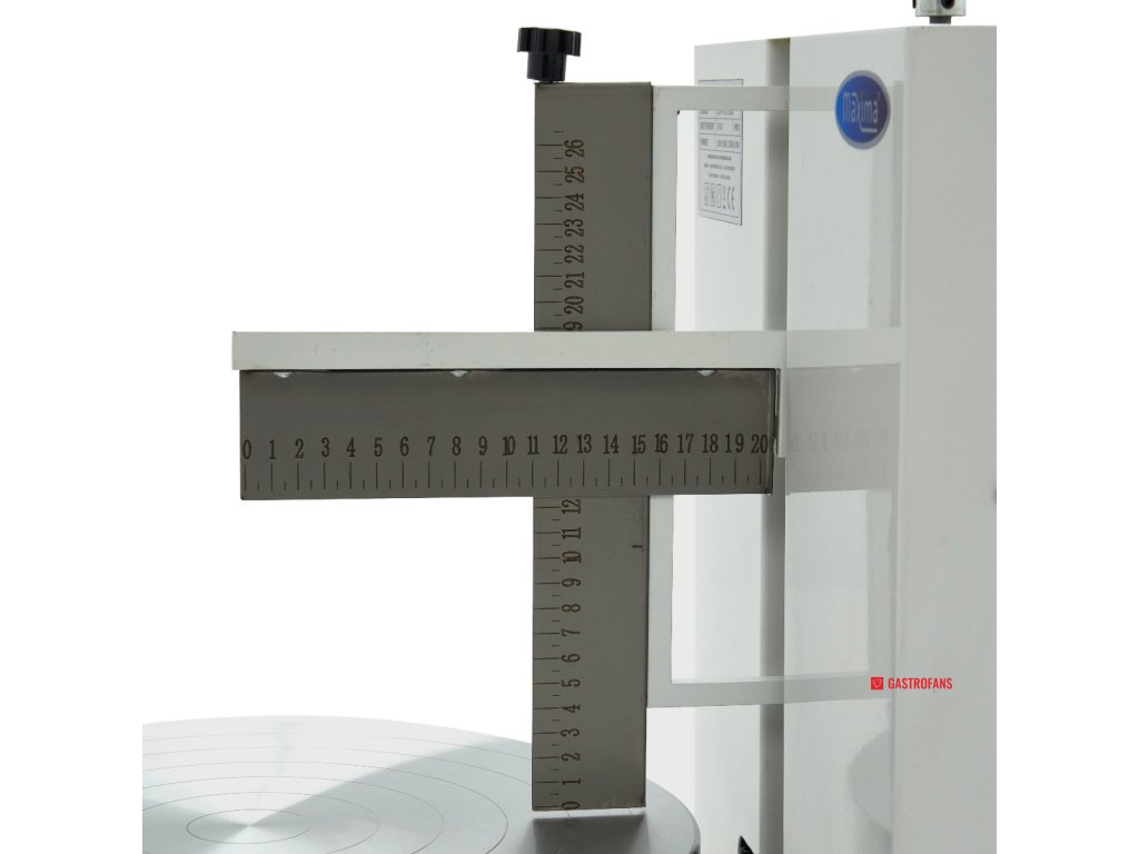 S tímto strojem na zdobení dortů snadno vyhladíte dorty. Dort se rovnoměrně otáčí na plošině, zatímco vertikální a horizontální nože zajišťují odstranění veškeré přebytečné polevy. Vznikne tak úhledná boční i horní strana. Stroj má také nastavitelnou rychlost v rozmezí 60-320 otáček za minutu a lze ji nastavit v pětistupňových krocích. Otočný stůl se může otáčet oběma směry.