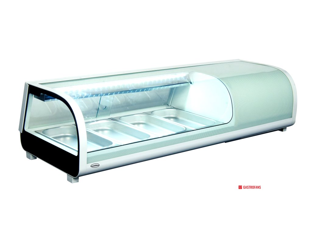 Tato vitrína je určena pro umístění na pracovní desku, což umožňuje snadný přístup k vystavenému sushi. Automatické odmrazování zajišťuje minimální údržbu a dlouhou životnost zařízení.