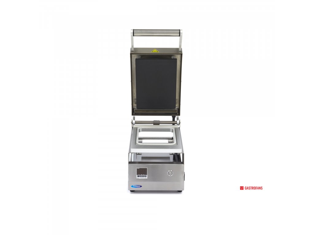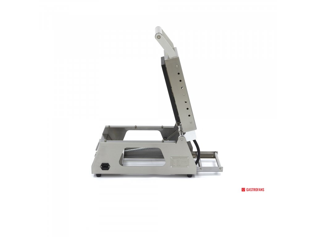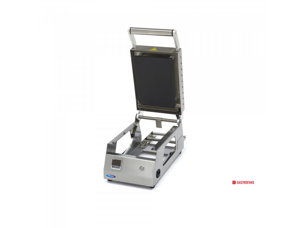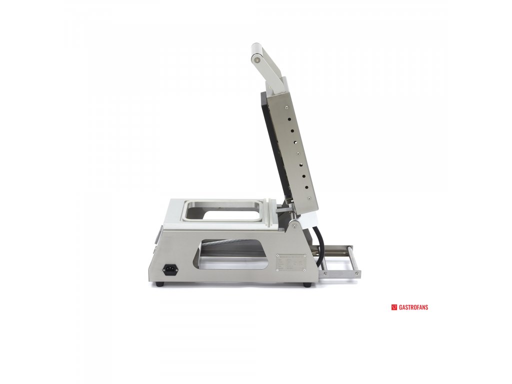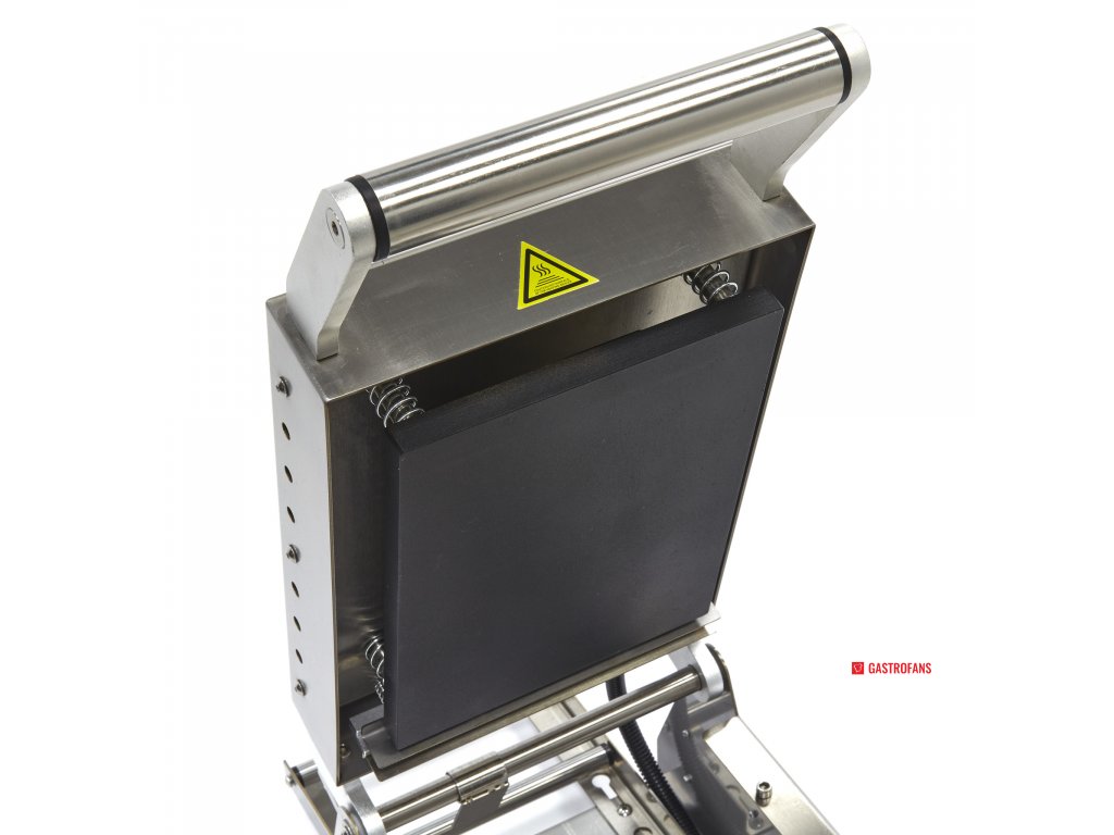 Pro uchování teplých pokrmů pro rozvoz, skladování v chladu nebo ohřívání na místě je ideální uzavírací zásobník. Pomocí tohoto profesionálního stroje na vrchní těsnění můžete balit různé výrobky a pokrmy do táců a zásobníků. S tímto strojem můžete utěsnit 6-8 táců za minutu a také uzavřít několik táců. Jedná se o velmi kompaktní a poloautomatickou svrchní zatavovačku, která v gastronomické kuchyni nezabere mnoho místa. Formy jsou špičkové kvality a jsou vyrobeny z hliníku. V zadní části stroje se nachází praktický držák na roli fólie.
