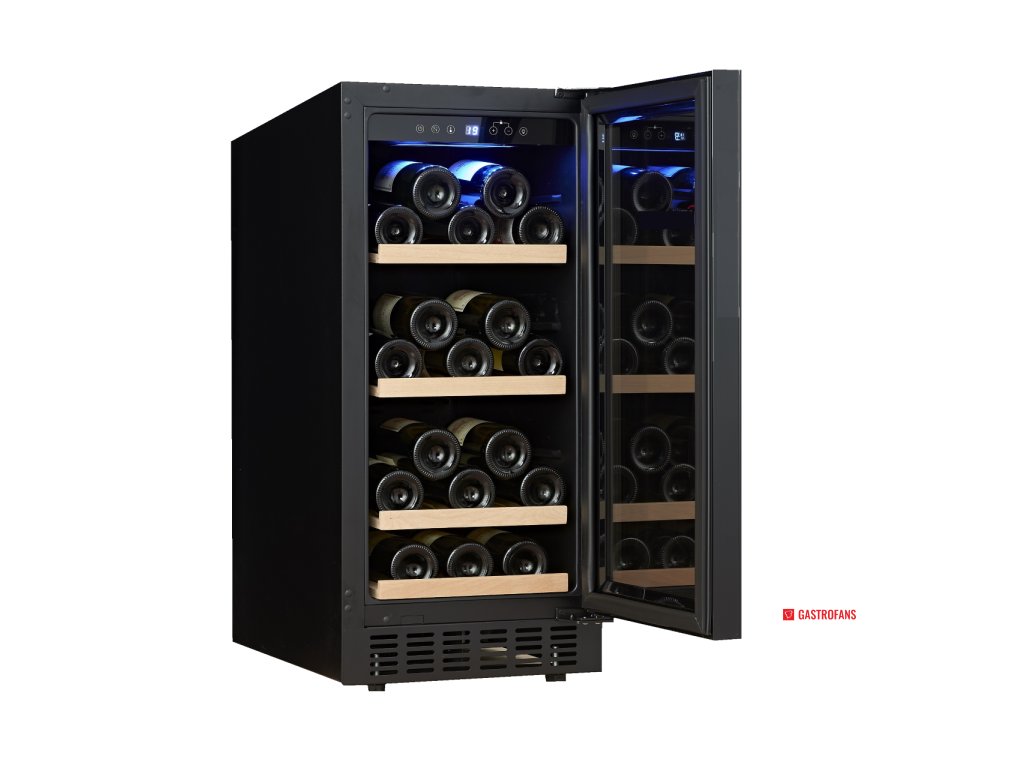 Vinotéka Guzzanti GZ 49B je moderní vestavná kompresorová vinotéka s kapacitou až 32 lahví vína. Díky možnosti vestavby i samostatného umístění je ideální volbou pro kuchyně, bary i hotelové provozy. Stabilní kompresorové chlazení zaručuje stálou teplotu, zatímco elegantní černý design s nerezovým madlem a dřevěnými policemi dodává vinotéce luxusní vzhled.