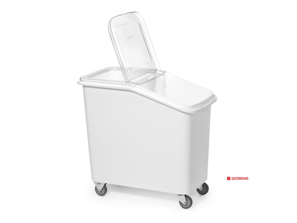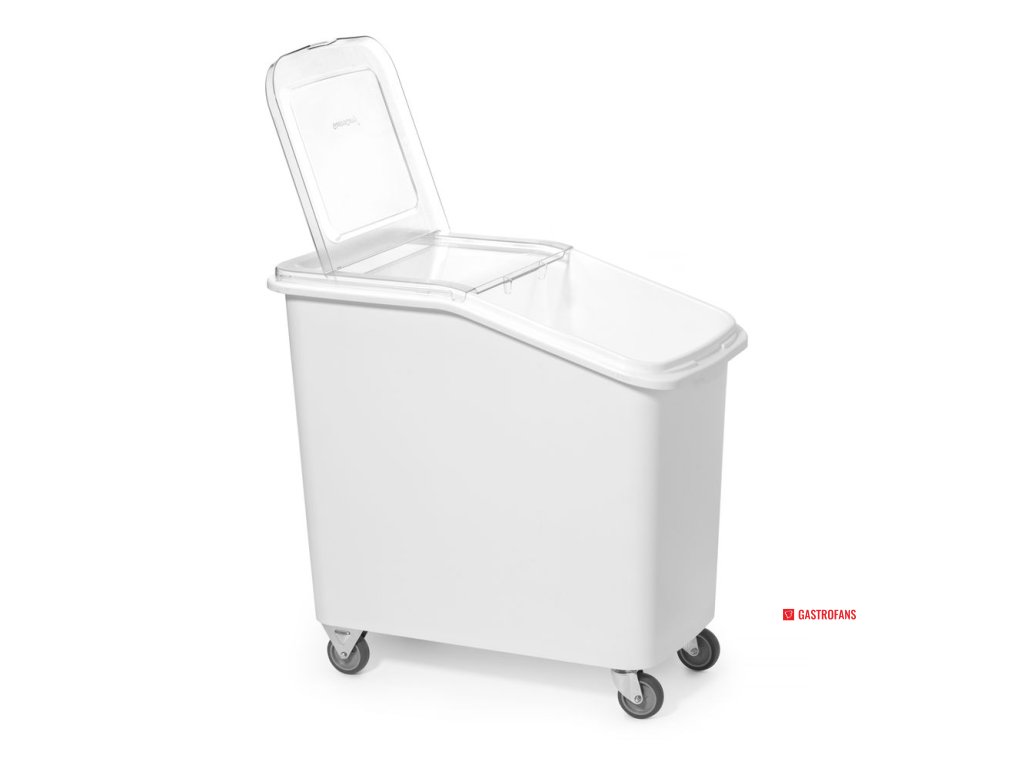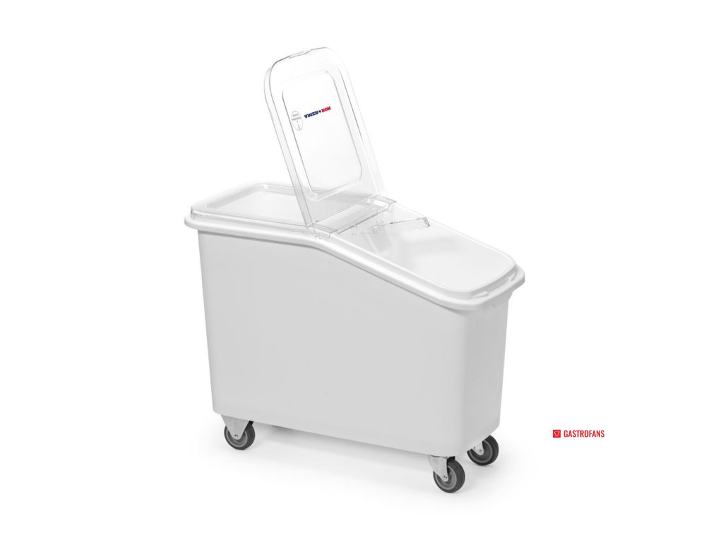 Využití: Skvělý pomocník pro pekárny, pizzerie, restaurace, cateringové provozy či domácí kuchyně — umožňuje hygienické skladování, pohodlný odvoz surovin a rychlé plnění. Díky kolečkům a víku je snadné suroviny přepravit i v menších či rušných provozech, aniž by se prášily nebo rozlévaly.