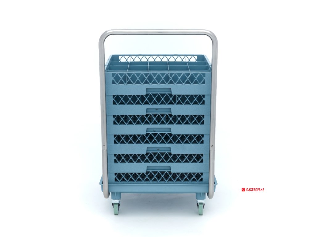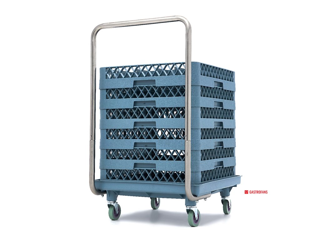 Tento vozík můžete použít k přepravě regálů se špinavým nádobím do myčky k čištění. Umožňuje snadné nakládání a vykládání regálů do myčky a také efektivní přesun regálů mezi kuchyní a prostorem myčky.